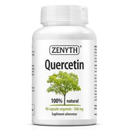 Quercetin - Zenyth Pharmaceuticals, 90 capsule vegetale: supliment alimentar 100% natural pentru mentinerea sanatatii sistemului imunitar, respirator, cardiovascular, pentru reducerea stresului oxidativ, inflamatiei si a manifestarilor alergice (in special in sfera sistemului respirator – astm bronsic, rinita alergica). Potrivit si pentru vegetarieni si vegani.