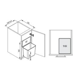 Dimensiunile interioare ale corpului de mobilier in care se monteaza acest cos de gunoi trebuie sa fie: minim 380 mm latime, minim 340 mm adancime si minim 390 mm inaltime.
