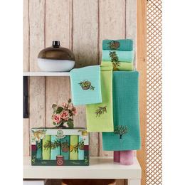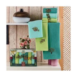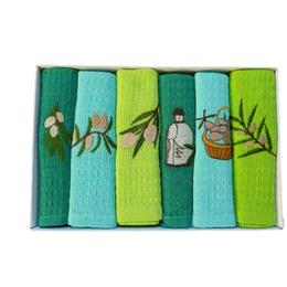 Setul contine 6 prosoape, multicolor, cu model brodat Olives Masline.