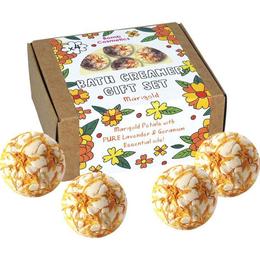 Set cadou Marigold Bath Creamer Raw 4 produse, Bomb Cosmetics. Setul contine 4 bile de baie creamer 30 g, naturale si create manual cu multa dragoste cu mult unt de cacao, mult unt de shea si petale adevarate de flori de galbenele. Cu uleiuri esentiale pure de levantica si geraniu, aceasta sare de baie cremoasa, impodobita cu muguri adevarati de lavanda va va rasfata la maxim!