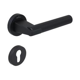 Acest set de manere Dora Knurling cu cilindru pentru usa, adauga o nota sofisticata si contemporana intregului spatiu. Datorita finisajului negru mat, usile tale vor capata o noua infatiare estetica.