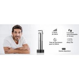 Capul de tuns detasabil, cu lama din titan-ceramica, aduce calitatea profesionala in baia dumneavoastra. Pentru tunderea barbii si a parului scurt lungimea de taiere poate fi reglata la 0,8 / 1,2 / 1,6 / 2,0 mm. Sase accesorii de pieptene interschimbabile (3-18 mm) ofera o tunsoare perfecta si exacta, conform dorintelor tale. In plus, setul se livreaza cu un atasament de taiere pentru par mare/bucle groase.