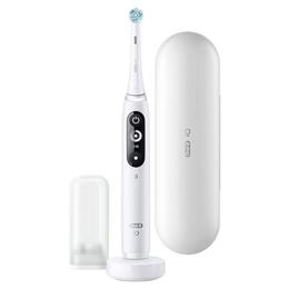 Periuta de Dinti Electrica - Oral-B iO7, Alb, 1 bucata: are tehnologie magnetica si micro-vibratii, Inteligenta artificiala, display led interactiv, senzor de presiune smart, timer vizibil. Periuta de dinti are 5 moduri de periaj si vine insotita de un capat, suport rezerve, incarcator magnetic si o trusa de calatorie. Afisajul interactiv indica informatii vitale: inclusiv modurile de periere si iti aminteste cand trebuie sa inlocuiesti capul, va saluta atunci cand porniti si va ofera un zambet pentru o treaba bine facuta. Inteligenta artificiala va recunoaste stilul de periaj si va ghideaza sa va acoperiti toti dintii, astfel incat sa nu ratati niciun loc. Cele cinci moduri de periere sunt: curatare zilnica, sensibil, ingrijire gingivala, curatare intensa si albire. Senzorul de presiune inteligent semnalizeaza rosu, alb sau verde pentru a va avertiza daca periati prea tare, prea incet sau cu presiunea potrivita.