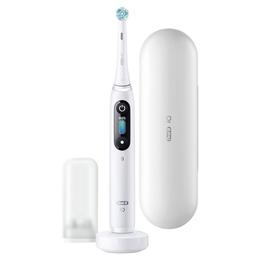 Periuta de Dinti Electrica - Oral-B iO8, Alb, 1 bucata: are tehnologie magnetica si micro-vibratii, Inteligenta artificiala, display led interactiv, senzor de presiune smart, timer vizibil. Periuta de dinti are 6 moduri de periaj si vine insotita de un capat, suport rezerve, incarcator magnetic si o trusa de calatorie. Afisajul interactiv indica informatii vitale: inclusiv modurile de periere si iti aminteste cand trebuie sa inlocuiesti capul, va saluta atunci cand porniti si va ofera un zambet pentru o treaba bine facuta. Inteligenta artificiala va recunoaste stilul de periaj si va ghideaza sa va acoperiti toti dintii, astfel incat sa nu ratati niciun loc. Cele sase moduri de periere sunt: curatare zilnica, sensibil, curatare ultra usoara, ingrijire gingivala, curatare intensa si albire. Senzorul de presiune inteligent semnalizeaza rosu, alb sau verde pentru a va avertiza daca periati prea tare, prea incet sau cu presiunea potrivita.