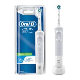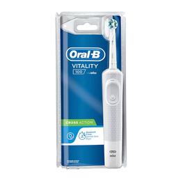 Periuta de Dinti Electrica - Oral-B Vitality Cross Action D100, Alb, 1 bucata: asigura o curatare 2D, care indeparteaza mai eficient* placa bacteriana fata de o periuta manuala obisnuita. Capatul rotunjit curata in profunzime intreaga dantura, inconjurand fiecare dinte in parte. Multumita dimensiunilor reduse, acesta permite curatarea zonelor mai greu accesibile periutelor obisnuite. Cu timerul incorporat in maner, periuta va vibra scurt la fiecare 30 de secunde pentru a recomanda schimbarea cadranului. Perii indicatori se deoloreaza pentru a semnaliza atunci cand capatul periutei trebuie schimbat.