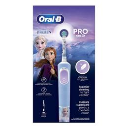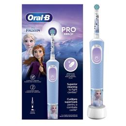 Periuta de Dinti Electrica - Oral-B Pro Kids Vitality Frozen D103, 1 bucata: , are 2 moduri de periaj, asigura o curatare 2D, datorita capatul rotunjit care curata in profunzime intreaga dantura, inconjurand fiecare dinte in parte. Multumita dimensiunilor reduse, acesta permite curatarea zonelor mai greu accesibile periutelor obisnuite si este ideala pentru copii mai mari de 3 ani. Perii capatului de periaj sunt extra moi oferindu-le copiilor o curatare blanda dar eficienta. Periuta de dinti Oral-B Vitality Frozen, vine cu 4 autocolante cu tematica Frozen, care se infasoara in jurul manerului periutei. Pachetul contine periuta de dinti si incarcator.