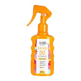 Lapte de Corp cu Protectie Solara - Sun Kiss SPF50 Victoria Beauty, Camco, 200 ml: ofera protectie UVA si UVB, este rezistent la apa si a fots testat dermatologic. Laptele de corp cu protectie solara imbogatit cu niacinamide si vitamina E are actiune antioxidanta.