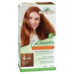Vopsea de Par Permanenta fara Amoniac Corpore Sano, nuanta 6.43 Alun, 140 ml: este imbogatita cu ulei de susan certificat organic, extract de floarea-soarelui si keratina vegetala, oferind parului o culoare intensa, stralucitoare si de lunga durata. Susanul din semintele sale se obtine un ulei cu un continut ridicat de vitamina E si acizi grasi esentiali, care furnizeaza nutritie si stralucire parului si protejeaza culoarea acestuia de radiatiile ultraviolete. Uleiul de floarea soarelui este bogat in flavonoide, acizi grasi nesaturati si ingrediente active care protejeaza parul de radicalii liberi. Keratina vegetala contine o combinatie de 18 aminoacizi naturali, obtinuti din grau si soia, cu o structura similara keratinei naturale a parului. Protejeaza structura interna a firului de par, conferind in acelasi timp stralucire si o atingere moale.