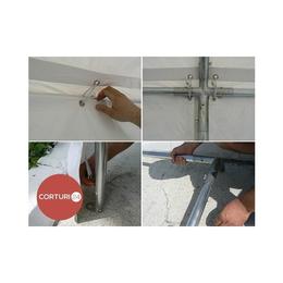 Acest cort de evenimente foarte ușor de montat are structură din oțel zincat, cu protecție anticorozivă, iar prelata robustă este din folie PVC de 500g/mp.