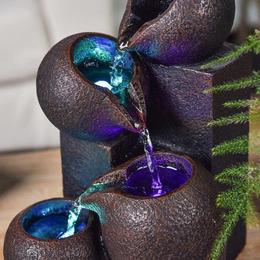 Iluminare LED: Varietatea automată a culorilor oferă o atmosferă plăcută, subliniind atât relieful decorului, cât și mișcarea apei.