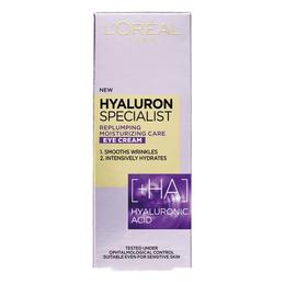 Crema de Ochi Antirid Hidratanta - L'Oreal Paris Hyaluron Specialist +HA Replumping Moisturizing Care Eye Cream, 15 ml: crema de ochi antirid hidratanta care reda volum tenului si netezeste ridurile. Cu formula avansata Hyaluron Specialist, imbogatita cu doua tipuri de Acid Hialuronic in concentratie ridicata: acid hialuronic cu masa moleculara mare, pentru hidratarea si netezirea suprafetei tenului si micro acid hialuronic, care patrunde in epiderm si ajuta la redobandirea volumului tenului. Textura usoara, non-grasa. Testata sub control oftalmologic. Potrivita chiar si pentru pielea sensibila.
