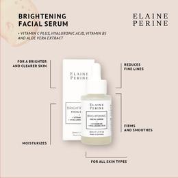 Ser Facial Iluminator - Elaine Perine Brightening Facial Serum + Vitamin B5 + Hyaluronic Acid, 30 ml: solutia perfecta pentru acele femei ce isi doresc sa obtina o piele luminoasa, hidratata si plina de vitalitate. Cu ingrediente atent alese, acest ser ofera beneficii multiple, ajutand la mentinerea sanatatii si frumusetii pielii tale. Reduce aspectul zonelor intunecate si ajuta la pastrarea aspectului natural al pielii. Acest ser combina vitamina C, vitamina E si alte ingrediente inovatoare pentru a avea o piele mai clara si mai stralucitoare in doar cateva saptamani. Serul este potrivit pentru toate tipurile de ten, in special pentru cele cu linii fine, pete intunecate si riduri.