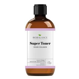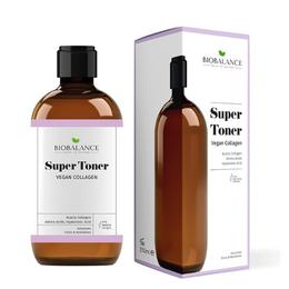 Super Toner Vegan Collagen, pentru Fermitate, Volumizare si Revitalizare, pentru Toate Tipurile de Ten - Bio Balance, 250 ml: super toner cu colagen vegetal de Acacia, amino acizi si acid hialuronic, cu o textura usoara, nelipicioasa, pentru indepartarea reziduurilor de machiaj. Lasa pielea curata, improspatata si catifelata. Lotiunea tonica Vegan Collagen cu colagen vegetal, ofera fermitate tenului, umple pielea si o revitalizeaza. Biopolimerii care imita colagenul, obtinuti din exudatul arborelui de salcam (Acacia Senegal), strang pielea si mentin un aspect tanar si plin al tenului. Testat dermatologic. Fara conservanti, alcool, parfum, uleiuri minerale, silicon, coloranti, gluten. Netestat pe animale.