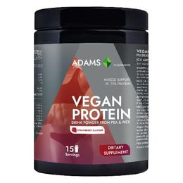 Pudra Proteica cu Gust de Capsuni - Adams Supplements Vegan Protein Strawberry Flavour, 454 g: pudra proteica vegana, obtinuta din mazare si orez, cu un spectru de aminoacizi foarte benefic, recomandata si persoanelor cu intoleranta la lactoza sau la produsele lactate. Proteinele de mazare si cele de orez sunt surse complete de proteine ce contin toti cei 9 aminoacizi esentiali si sunt usor digerabile. Acestea va pot imbunatati sanatatea generala si sustin cresterea si recuperarea musculara.