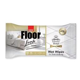 Servetele Umede XL pentru Pardoseli - Sano Floor Fresh Home Luxury Hotel, 10 buc: servetele usor de utilizat, cu orificiu pentru orice tip de mop, matura etc. Curata si ofera stralucire, parfumand incaperea cu un parfum de lunga durata. Sunt usor de utilizat, fara galeata sau multa apa.