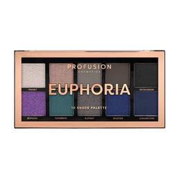 Paleta Farduri Vegane, 10 Nuante - Profusion Cosmetics Euphoria, 103 g: paleta cu 10 nuante de fard ce va permite sa creati un machiaj elegant si sofisticat. Contine farduri de pleoape extrem de pigmentate, in nuante intense si euforice, includ nuante de gri reci, violet viu si albastru intens. Indiferent daca vrei sa arati sofisticat in albastru sau misterios in gri, aceasta paleta acopera orice nevoie! Formula usoara si de lunga durata ofera o culoare intensa, se amesteca si se aplica uniform. Este paleta potrivita pentru toate tonurile de piele si este perfecta pentru calatorii datorita dimensiunilor sale compacte.