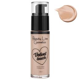 Fond de Ten Lichid - Cream Team Velvet Touch Finish Foundation Beauty Line Cosmetics, nuanta BL44 014 Nr. 04 Warm Beige, 30 ml: cu o textura matasoasa si hidratanta, se intinde foarte bine si uniformizeaza nuanta tenului. Fondul de ten Velvet Touch acopera imperfectiunile, ofera stralucire tenului si este rezistent la transfer. Produsul este potrivit pentru toate tipurile de ten.