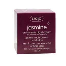 Crema de Noapte Antirid 50+ - Ziaja Jasmine Anti-Wrinkle Night Cream, 50 ml: crema de noapte hidratanta pentru ingrijirea zilnica a fetei, conceputa pentru pielea uscata si matura. Crema cu o consistenta bogata si cremoasa, cu un parfum placut, ofera hidratare si hranire de lunga durata. Rreduce rugozitatea pielii si lupta impotriva semnelor de imbatranire, previne slabirea pielii si netezeste ridurile. Intareste perfect pielea si previne pierderea fermitatii, ilumineaza petele pigmentare si uniformizeaza nuanta pielii. Regenereaza epiderma. Produs vegan. Produs recomandat pentru varsta 50+; pentru piele: matura, predispusa la riduri. Jasmine gama cu unt de iasomie pentru ten matur, ridat, 50+.