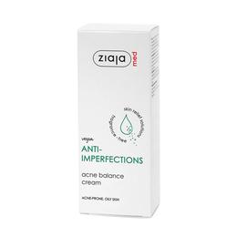 Crema Anti-imperfectiuni pentru Ten Gras/Mixt - Ziaja Med Anti-Imperfections Acne Balance Cream, 50 ml: crema antiacneica usoara, pentru adolescenti si adulti. Normalizeaza activitatea glandelor sebacee. Accelereaza exfolierea stratului cornos. Reduce formarea punctelor negre. Calmeaza pielea suprasensibila. Produs vegan, cu 90% ingrediente de origine naturala. Produs recomandat de la varsta de 12 ani. Crema este recomandata pentru piele mixta, grasa, predispusa la acnee.