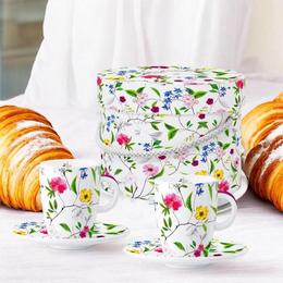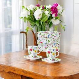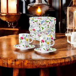 Set cesti format din doua cesti espresso mici, realizate din portelan de magneziu intr-o cutie cadou asortata.