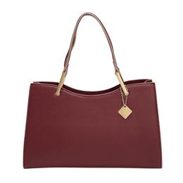 Accesoriu metalic auriu-patinat, cu logo ștanțat, detașabil și cu rol decorativ. Geantă City Elegantă Bordo. Include sac textil orange pentru depozitare.