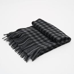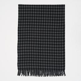 Fular tip șal. Țesătură din poliester. Imprimeu carouri negre-gri.