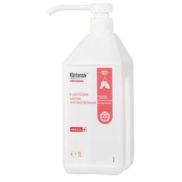 Sapun Antimicrobian Fara Parfum - Klintensiv Klinoderm, 1000 ml: este un sapun lichid destinat curatarii si dezinfectarii igienice si chirurgicale a mainilor prin spalare, respectiv decontaminarii preoperatorii a pielii intacte. Sapunul contine agenti tensioactivi cu capacitate buna de curatare si spumare redusa. Produsul este testat dermatologic. Are actiune biocida rapida, efect emolient si protejeaza pielea. Produsul nu contine parfum.