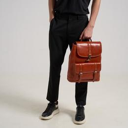 Mâner tip bandă pentru transport ușor ca bagaj de mâna. Fețe colorate. Buzunar exterior frontal, mediu, în relief, închis cu fermor. Curelele reglabile și căptușite pentru un confort sporit. Sac textil pentru depozitare. Rucsac Maro-Cognac Închis Cu Clapă.
