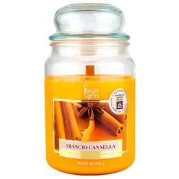 Lumanare Parfumata cu Portocala si Scortisoara - Magic Lights Arancio Cannella, 510 g: are un parfum intens si persistent de portocala si scortisoara, care se difuzeaza in toata incaperea, creand o atmosfera placuta. Chiar si dupa stingere, aroma continua sa persiste in aer pentru cateva momente, mentinand ambinetul parfumat.