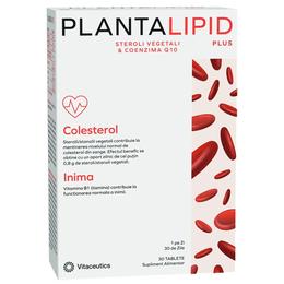 Plantalipid Plus - Vitaceutics, 30 tablete: steroli vegetali care pot contribui la mentinerea nivelului de colesterol din sange. Produs natural, pe baza de plante. Vitamina B1 (taimina) poate contribui la functionarea normala a inimii. Coenzima Q10 poate contribui la sanatatea cardiovasculara si Vitamina B3 (niacina) contribuie la reglarea tensiunii arteriale.