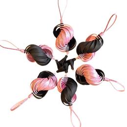 Setul este format din 6 globuri in forma de spirala, cu o marime aproximativa de 14 cm fiecare, de culoare roz cu negru.