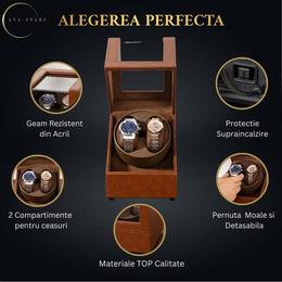 - Spatiu generos: pastreaza cu usurinta ceasurile automate in compartimente individuale, perfect dimensionate pentru a le mentine organizate si preveni deteriorarea.