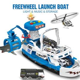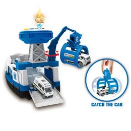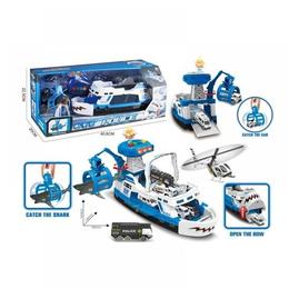 Barca de politie Shark Attack nu este chiar o barca obisnuita de jucarie. Echipata cu lumini si sunete si numeroase piese in miscare la bord, inclusiv o macara mobila, o catapulta ce arunca masinile peste bord, un rechin si multe altele.