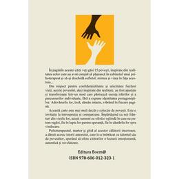 Fiecare poveste adaposteste o lume interioara complexa, plina de nuante si contradictii. Veti intalni oameni obisnuiti, cu sperante si temeri asemanatoare cu ale noastre, care insa au avut curajul sa-si exploreze adancurile sufletului. Prin intermediul acestor povesti veti descoperi ca, desi fiecare dintre noi este unic, experientele umane fundamentale ne unesc intr-o comuniune universala. Sper ca aceste marturii sa va inspire, sa va ofere intelegere si sa va aminteasca ca, indiferent de provocarile cu care ne confruntam, vindecarea si transfor-marea sunt intotdeauna posibile.
