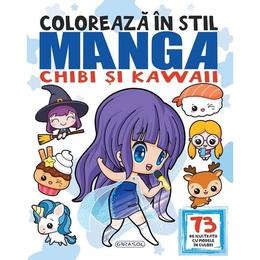 Coloreaza in stil Manga, Chibi si Kawaii: 73 de ilustratii cu modele in culori, editura Girasol: