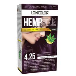Vopsea Permanenta pentru Par cu Amoniac - Loncolor HempStyle, nuanta 4.25 Castaniu Mov, 1 pachet: vopsea de par permanenta cu amoniac ce ofera culori vii si stralucitoare, si asigura o acoperire completa a firelor de par albe. Formula inovatoare imbina proprietatile benefice ale uleiului de canepa si ale uleiului de jojoba, care contribuie la protejarea si hranirea parului si a scalpului in timpul procesului de colorare. Aceste ingrediente naturale, bogate in acizi grasi Omega-3, Omega-6 si Omega-9, ofera parului elasticitate, stralucire si un aspect sanatos. Pachetul include o masca speciala pentru par si scalp, care se aplica dupa colorare pentru a hrani si intari firul de par de la radacina, asigurand totodata relaxarea scalpului. Masca amplifica efectul protector si nutritiv al vopselei, datorita acizilor grasi esentiali prezenti in uleiurile de canepa si jojoba.