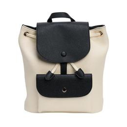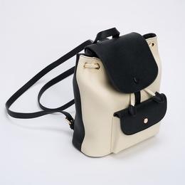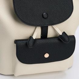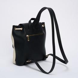 Culori complementare. Față colorată în bej, spatele&clapeta colorate în negru. Model clasic, cu clapetă. Triplu sistem de închidere: fermoar, șnur și clapetă. Buzunar aplicat frontal. Buzunar dorsal, securizat cu fermoar. Mâner pentru mână. Curele reglabile. Detalii metalice aurii. Rucsac Negru În Două Culori.