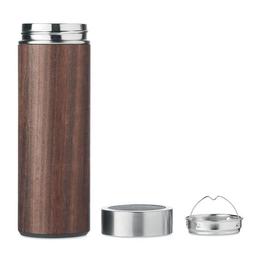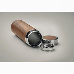 Termos 400 ml, cu perete dublu, din otel inoxidabil si lemn de stejar, infuzor de ceai inclus.