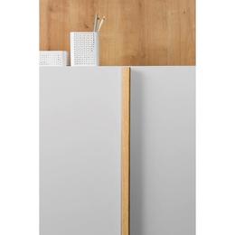 Manerul Cano imbina perfect functionalitatea si estetica, oferind un design curat si minimalist. Caracterizat de profile groase din lemn si margini rotunjite, acesta adauga o nota de eleganta si o calitate tactila neteda. Disponibil in finisajele stejar, nuc, stejar lacuit negru mat si stejar natur, Cano se integreaza perfect in orice proiect de amenajare interioara. Aceasta versatilitate il face alegerea ideala in special pentru mediile de birou care pun accent pe caldura si bunastare.