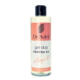 Gel de Dus pentru Ea - Dr. Soleil, 260 ml: gel de dus cu efect emolient, pentru o senzatie de piele catifelata inca de la prima utilizare. Formula sa speciala protejeaza pielea impotriva deshidratarii si o mentine catifelata pentru un timp indelungat. Complexul activ din compozitie ofera suplete pielii si o senzatie senzoriala placuta. Continutul de acid hialuronic ajuta la mentinerea hidratarii si elasticitatii pielii. Potrivit pentru utilizare zilnica si pentru toate tipurile de piele. Testat dermatologic. Produs dermato-cosmetic. Formula vegana. Fara coloranti artificiali.