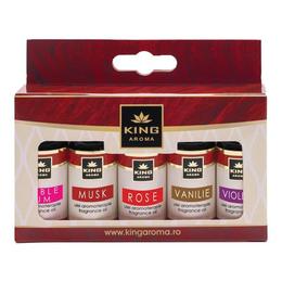 Contine 5 sticlute uleiuri aromaterapie 10 ml aromele: Bubble Gum, Musk, Rose, Vanilie, Violete