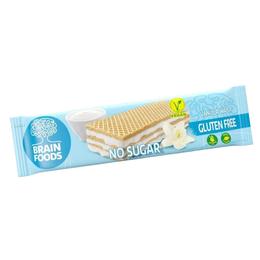 Napolitana cu Vanilie, Fara Gluten si Zahar - Brain Foods Vanilla Wafer Gluten Free, No Sugar Added, 30 g: napolitana crocanta cu crema fina de vanilie, special creata pentru cei care isi doresc o gustare dulce, dar curata. Formula sa este fara gluten, fara zahar adaugat, 100% vegana si nu contine ulei de palmier – o alegere ideala pentru un stil de viata sanatos.