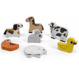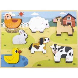 Puzzle senzorial: Ferma: Puzzle-ul are 7 piese plate, de dimensiuni mari, ce stimuleaza coordonarea mana-ochi, motricitatea fina, gandirea logica, capacitatea de asociere, si creativitatea. Piesele sunt din lemn, subtiri, perfecte pentru a fi manipulate de micutele manute.