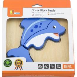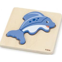 Puzzle din lemn: Delfin: Puzzle-ul contine 3 piese in relief, perfecte pentru a fi manipulate de micutele manute.