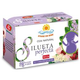 Ceai Silueta Perfecta M124 - Fares, 20 plicuri cu snur: ceai dintr-un amestec de plante medicinale destinat sustinerii procesului de slabit si mentinerii greutatii corporale. Formula sa contribuie la reglarea apetitului, stimuleaza arderea grasimilor si sustine detoxifierea organismului. Acesta este un ajutor natural in cadrul unui stil de viata activ si al unei alimentatii echilibrate. Plantele din compozitie actioneaza sinergic pentru a reduce senzatia de foame, sustine metabolismul lipidic si favorizeaza eliminarea toxinelor si a excesului de apa din organism.