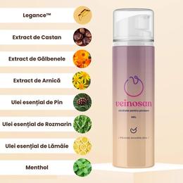 Gel Veinosan - Faunus Plant, 150 ml: gel premium destinat prevenirii si tratarii varicelor, senzatiei de picioare grele si obosite, prin stimularea microcirculatiei si ameliorarea inflamatiei. Formula include ingredientul activ patentat Legance™ (extras din ghimbir salbatic prin CO2 supercritic, importat din Franta), combinat cu plante recunoscute pentru efectele lor vasculoprotectoare: extracte de galbenele, castan salbatic, arnica, uleiuri esentiale de pin, rozmarin, lamaie, mentol si alcool denat. Gelul are o textura placuta, nu lasa urme sau senzatie lipicioasa si este ambalat intr-un flacon practic cu pompa.