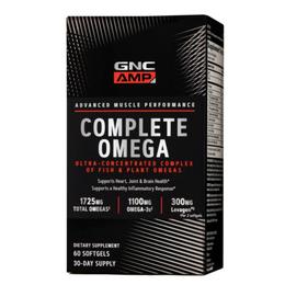 Acizi Grasi Omega - GNC AMP Complete Omega, 60 capsule gelatinoase: complex ultra-concentrat de acizi grasi esentiali, creat pentru persoanele active care isi doresc sustinere completa pentru sanatatea inimii, articulatiilor si functiilor cognitive. Cu un profil avansat de Omega-3 (EPA, DHA, DPA), completat de Omega-6, 7 si 9, acest supliment contribuie la mentinerea unui echilibru antiinflamator in organism. Formula este imbogatita cu Levagen®, un ingredient inovator cu rol protector asupra articulatiilor, si cu ulei de chimen negru, recunoscut pentru sustinerea sistemului imunitar. Ideal in perioade de stres oxidativ, suprasolicitare fizica sau efort intelectual. Produsul nu contine: amidon, coloranti artificiali, arome artificiale, grau, gluten, porumb, lactate.