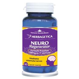 Neuro Regenerator - Herbagetica, 60 capsule vegetale: supliment alimentar avansat, conceput pentru sprijinul sistemului nervos si functionarea normala a creierului. Formula sa unica combina plante medicinale si extracte naturale cu actiune neuroprotectoare, antioxidanta si regeneratoare. Prin ingredientele active, produsul poate contribui la imbunatatirea memoriei, concentrarii si claritatii mentale, fiind ideal in perioade de efort intelectual intens sau imbatranire neurologica. Recomandat si in stari de stres, anxietate usoara sau oboseala psihica, Neuro Regenerator sustine sanatatea neuronala si performanta mentala zilnica.