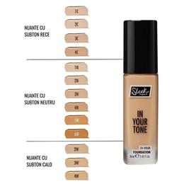 Fond de Ten - Sleek MakeUP In Your Tone 24 Hour Foundation, nuanta 2C Fair, 30 ml: fondul de ten ofera o acoperire medie, usor de construit, si un finisaj semi-mat, conceput pentru a camufla imperfectiunile si a uniformiza nuanta pielii. Rezistent la umiditate si transpiratie, confera tenului un aspect neted, proaspat si natural, fara efect de incarcare. Diminueaza vizibil porii si asigura un look uniform, potrivit pentru purtare zilnica sau ocazii speciale. Formula lejera se aplica usor si se estompeaza rapid cu pensula, buretel sau degete. Este compatibila cu toate tipurile de ten si este disponibila intr-o varietate de nuante, adaptate diferitelor tonuri si subtonuri ale pielii, pentru un rezultat impecabil si personalizat.