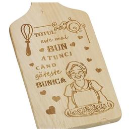 Tocator Gateste BUNICA, dreptunghiular, lemn, cu maner, 30 x 14 cm